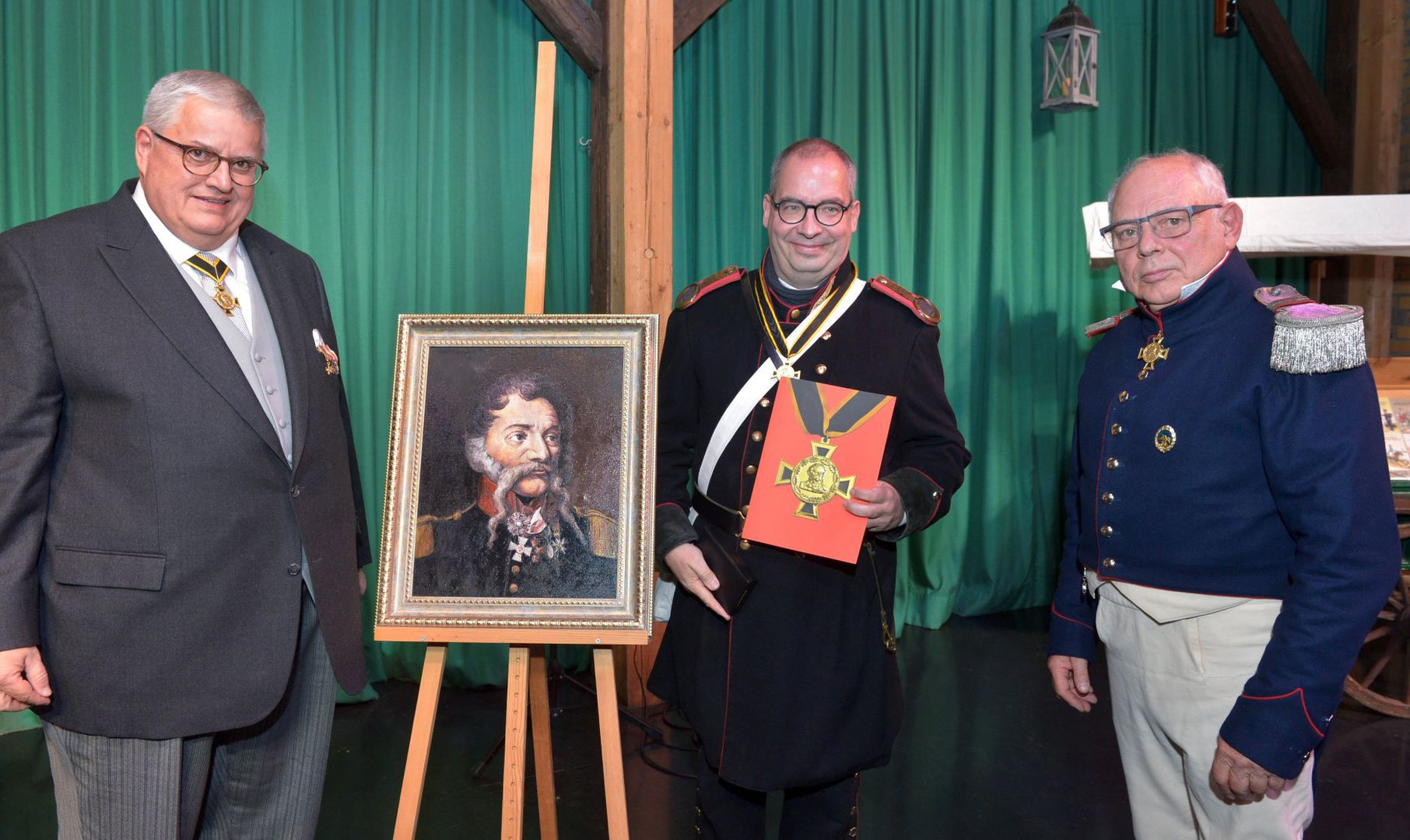 Leipzig, der 20. Oktober 2022. Der von der Kultur- und Umweltstiftung Leipziger Land ins Leben gerufene Kommandant-Prendel-Orden würdigte am heutigen Donnerstag erneut jahrzehntelanges Engagement für die Erinnerung an die Völkerschlacht bei Leipzig 1813 durch die Vergabe des Kommandant-Prendel-Kreuzes und der Kommandant-Prendel-Medaille. Matthias Forßbohm, Präsident der Handwerkskammer zu Leipzig, und der in Koblenz lebende Franzose Jean-Noël Charon wurden feierlich in die Reihen des Ordenskapitels aufgenommen und mit dem Kommandant-Prendel-Kreuz ausgezeichnet. Neben dem Kommandant-Prendel-Kreuz verlieh der Orden erneut drei mit je 500 Euro dotierte Kommandant-Prendel-Medaillen Gertraud Matthes, Günter-Werner Franke und Holm Kresse. Die Verleihung erfolgte in der historischen Museumsscheune zu Liebertwolkwitz.