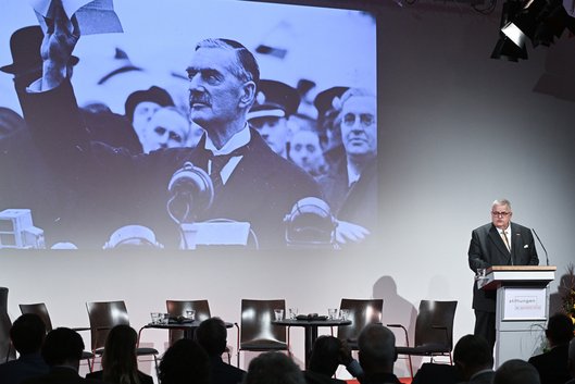 Prof. Dr. Sir Christopher Clark, Regius Professor of History an der University of Cambridge, erläuterte in seiner Keynote "Europa als Schicksalsgemeinschaft? Vom politischen Nutzen der Geschichte", wie eine gemeinsame europäische Geschichte immer wieder im Nachhinein nationalisiert werde: "Die komplexe europäische Vergangenheit wird als Nährstoff für nationale Erzählungen genutzt." Dies ließe sich an den europaweiten politischen Unruhen 1848 ebenso zeigen wie an den nationalen Erklärmustern zum Ausbruch des I. Weltkriegs. Letztere hätten beispielsweise auch als Argumentationshilfen für den Austritt Großbritanniens aus der EU herhalten müssen. Auch Russlands Präsident Wladimir Putin und seine Propagandamaschine nutzen Clark zufolge regelmäßig geschichtliche Narrative. Zu konstatieren sei dabei, dass Russland von der revolutionären Geschichtsbetrachtung des 20. Jahrhunderts zurückgekehrt sei zu einer im 18. und 19. Jahrhundert verankerten Philosophie, die das Land als konservativen Widerpart zum liberalen Westen verstehe. Insofern sei das 20. Jahrhundert als eine Ausnahme zu verstehen - inzwischen sei man zum "Normalfall" des Petersburger Manifests unter Zar Nicolaus I zurückgekehrt, laut dem Russland mit Großmächten verhandle und kleinere Staaten allenfalls als verhandelbare Landstriche betrachte.